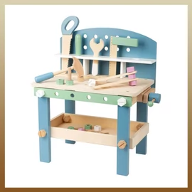 Valami zajlik a gyermekműhelyben! Ezzel a klasszikus műhelyszínekkel rendelkező, sok látható fával rendelkező kompakt munkapaddal a kézi készségek kipróbálhatók a szerepjátékban egy kis játéktéren esztergálás, fűrészelés és csavarozás közben.