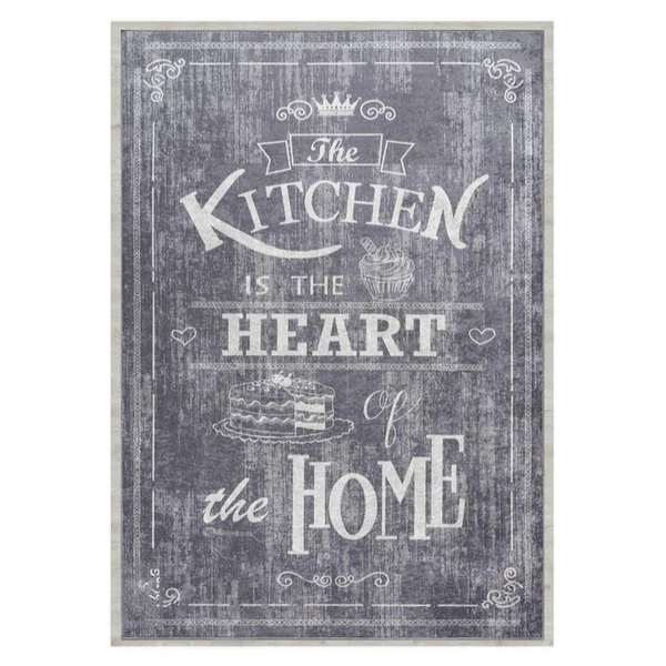 Ez a stílusos konyhai szőnyeg tökéletes választás azok számára, akik szeretik, ha otthonuk központja – a konyha – nemcsak praktikus, hanem hangulatos is. A „The Kitchen is the Heart of the Home” feliratú design elegáns, vintage stílusban díszíti a konyhát, miközben kellemes, otthonos atmoszférát teremt.