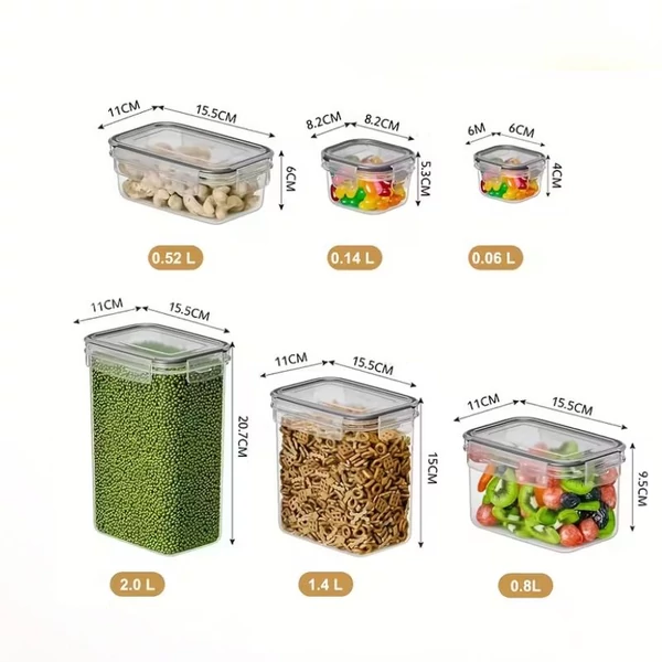 Tartsa rendezetten és frissen élelmiszereit ezzel a 12 részes konyhai tárolódoboz készlettel! Az élelmiszerbiztonsági minőségű műanyagból készült dobozok BPA- és PVC-mentesek, szivárgásmentes záródású tetőkkel. Ideális gabonafélék, liszt, cukor vagy egyéb alapanyagok tárolására.