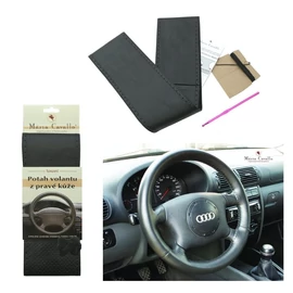 Kormányvédő huzat – valódi bőr, A típus, fekete, perforált amMC055