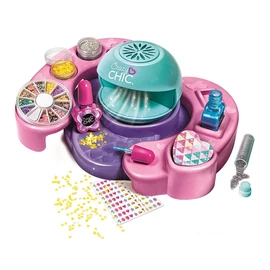 Stílusos és kreatív Crazy Chic körömkészítő szett a Clementoni-tól, amely lehetővé teszi, hogy a gyerekek saját, egyedi manikűröket készítsenek biztonságosan és játékosan. A szett minden szükséges kiegészítőt tartalmaz – körömlakkokat, csillámport, matricákat és még körömlakkszárítót is –, így a kis divatrajongók igazi szalonhangulatban alkothatnak.