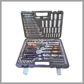 Tartalmaz 1/4", 3/8" és 1/2" méretű dugókulcsokat, hosszabbítókat és racsnis hajtókarokat