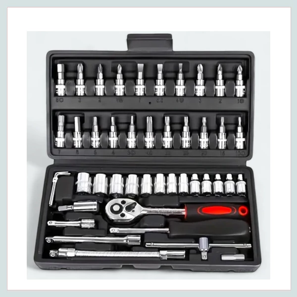 Sokoldalúság: A 46 darabos készlet lehetővé teszi, hogy különféle szerelési feladatokat végezz el, legyen szó autószerelésről vagy otthoni javításokról.