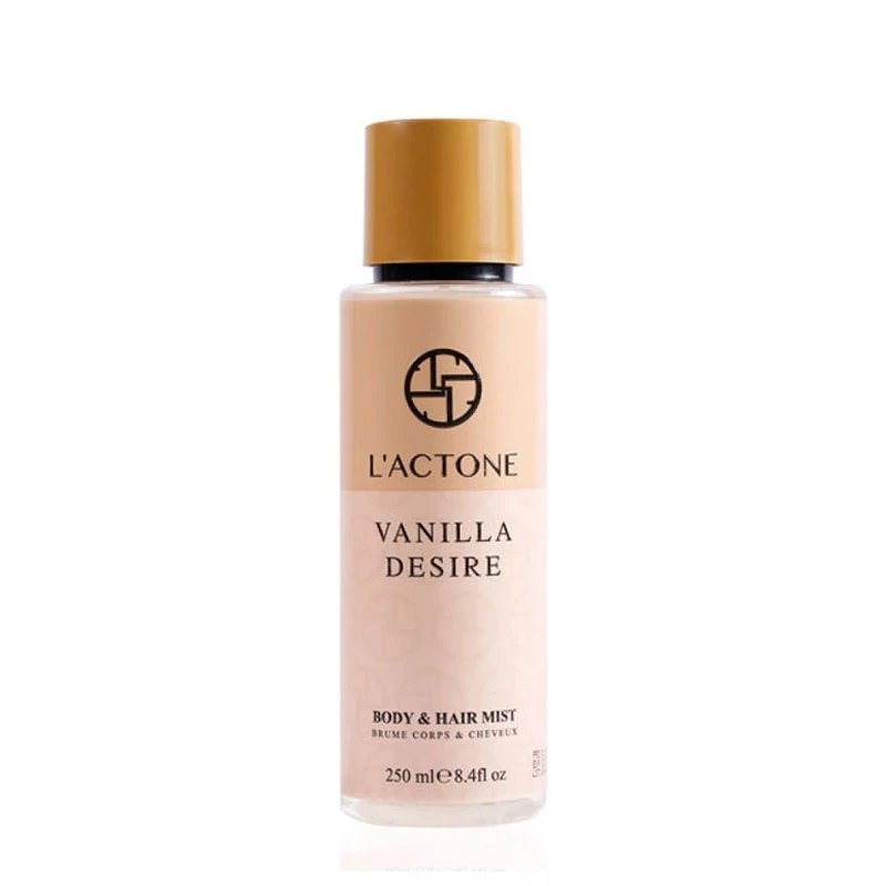 A L’ACTONE Vanilla Desire test- és hajpermet lágy, édes vaníliaillattal öleli körül a bőrt és a hajat, hosszan tartó frissességet biztosítva. A meleg, krémes aroma nőies, kifinomult és érzéki illatvilágot teremt, amely egész nap elkísér.