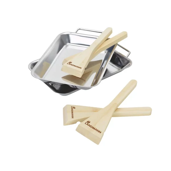 Tartós rozsdamentes acélból készült grill sütőtálca bambusz nyéllel.
