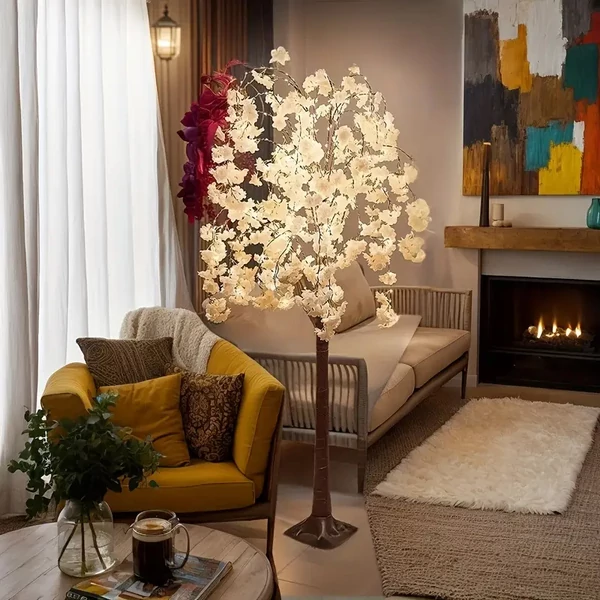 Ez a 180 cm magas, LED-es virágfényfa nem csupán dekoráció, hanem valódi hangulati elem, amely meleg fényével és elegáns virágdíszítésével minden belső teret különlegessé varázsol.