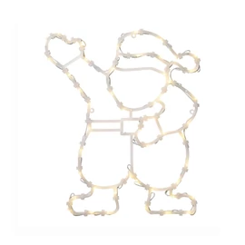 Vidám, világító Mikulás alakú LED dekoráció, amely az ünnepi időszak elengedhetetlen része lehet otthonodban vagy kertedben. Melegfehér fénye barátságos hangulatot teremt, akár önálló díszként, akár más karácsonyi fények kiegészítéseként használod.