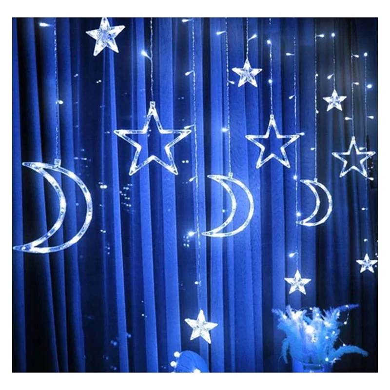 LED fényfüggöny csillag és hold formákkal – 2,5 m, 120 LED, hidegfehér fény CH-9531