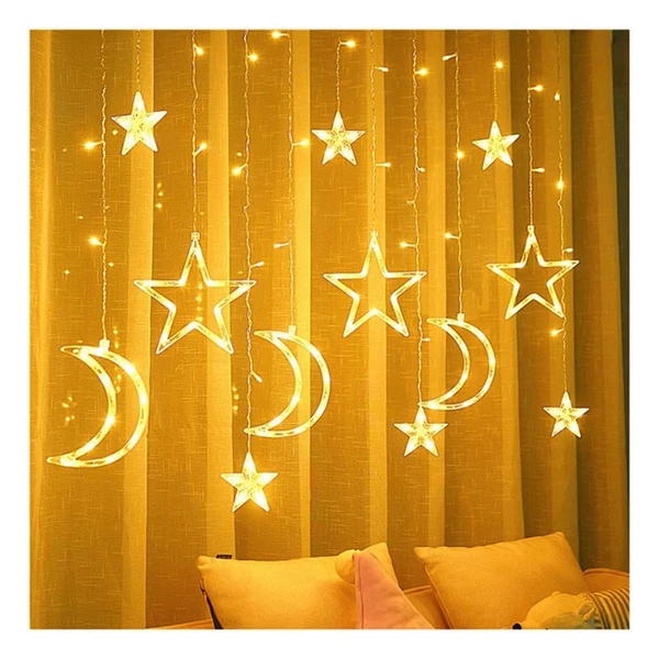 LED fényfüggöny csillag és hold formákkal – 2,5 m, 120 LED, melegfehér fény CH-9530