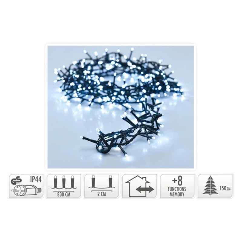 Ez a 400 LED-es, 8 méter hosszú karácsonyi fényfüzér kiváló választás, ha látványos és elegáns világítással szeretnéd feldíszíteni otthonodat vagy kertedet. A fürtös elrendezésű LED-ek sűrű, ragyogó fényt adnak, így tökéletesen alkalmasak karácsonyfák, korlátok, ablakok vagy akár bútorok dekorálására.