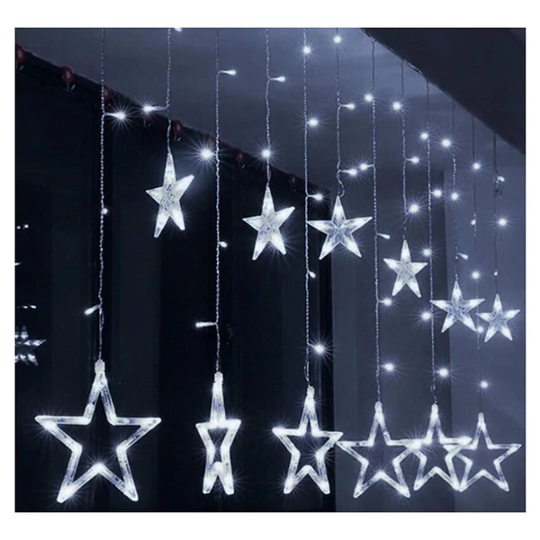 LED karácsonyi fényfüzér – Csillag alakú díszek, hideg fehér világítás DN-65