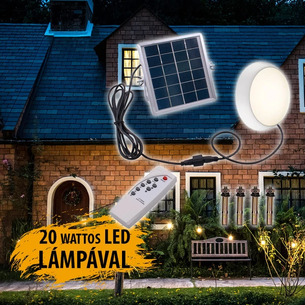 - Teljesítmény: 20W (lámpa) 15W (napelem)