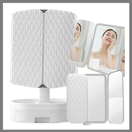 A tükör alsó része tárolóval és rekeszekkel rendelkezik a különféle kozmetikai kiegészítők számára. Ez nagyon praktikus, főleg utazáskor, amikor a tükörbe pakolhatjuk a legszükségesebb kozmetikumokat.