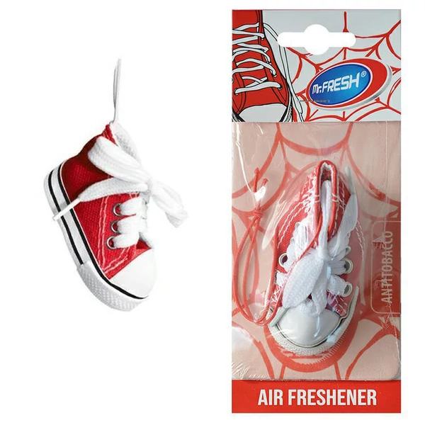 A Little SHOES – Anti Tobacco egy cipő formájú, zsinóros autóillatosító, amely nemcsak egyedi megjelenésével, hanem hosszan tartó illatával is kiemelkedik. A modern, frissítő illat dohányfüst elleni hatással bír, és polimerek segítségével fokozatosan szabadul fel a levegőbe.
