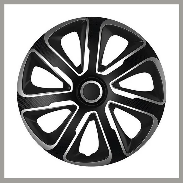 A LIVORNO 15" ezüst-fekete (karbon mintázatú) dísztárcsa szett modern megjelenést és esztétikus külsőt biztosít bármilyen típusú jármű számára. Tartós műanyagból készült, ellenáll az időjárás viszontagságainak, és egyszerűen felszerelhető acélfelnikre.
