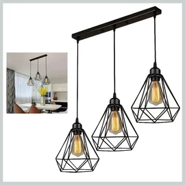Loft stílusú 3 izzós retro függőlámpa – fekete fém vázzal KR1500199