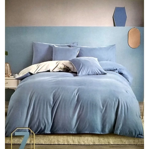 LUNA 7 részes egyszínű ágynemű garnitúra - középkék FAB18
