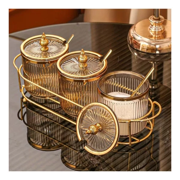 Dobja fel konyhája megjelenését ezzel az elegáns fűszertartó készlettel! Az üveg fűszertartók fedővel és kanállal érkeznek, valamint egy praktikus fémállvány tartja őket rendezett formában. Ideális só, cukor, fűszerek vagy egyéb ízesítők tárolására.