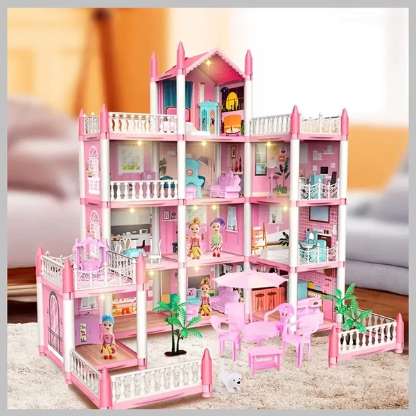 Luxus Hercegnő Játékház – 4 Szinttel, 11 Szobával, 3 Terasszal és 34 Bútordarabbal, Rózsaszín Kastély Lányoknak