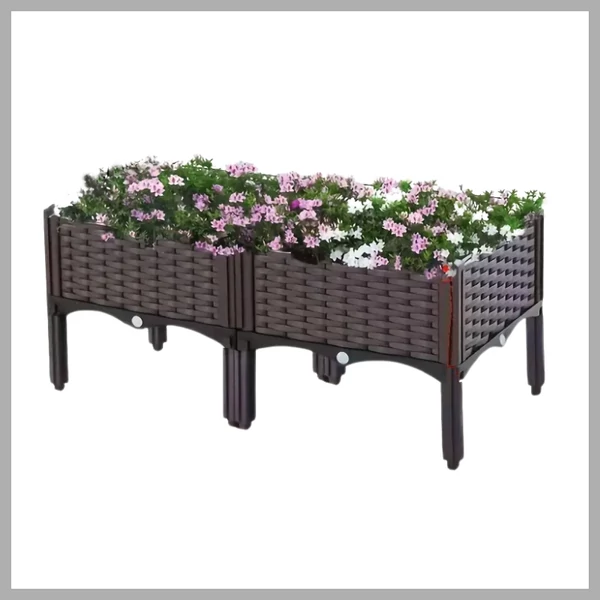 Tegye kényelmesebbé és dekoratívabbá kertészkedését ezzel a tágas, 80 cm hosszú, két egységből álló magasított kerti ággyal! A modern, fonott hatású külső dizájn és az emelt kialakítás kényelmet és esztétikát nyújt minden kültéri környezetben.