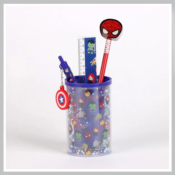 Ez a Marvel licenccel ellátott motívumos írószerkészlet ideális választás gyerekeknek és Disney-rajongóknak. A szett egy átlátszó pohárban érkezik, .