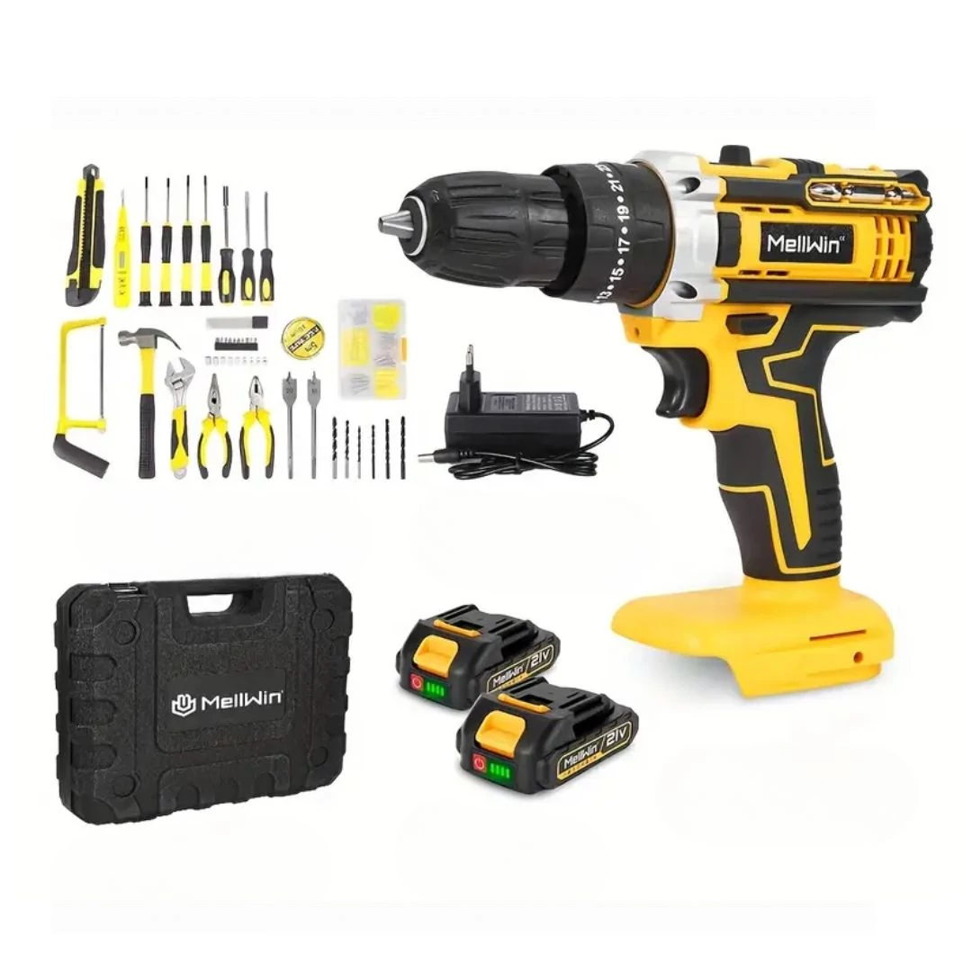 A MellWin 21V akkus fúró készlet ideális választás mind barkácsoláshoz, mind professzionális munkákhoz. A nagy teljesítményű akkus fúró ergonomikus kialakítása kényelmes használatot biztosít, a két akkumulátor pedig hosszabb üzemidőt nyújt. A készlet 44 tartozékkal és egy praktikus műanyag hordtáskával érkezik, így minden szükséges eszköz kéznél van egy kompakt csomagban.