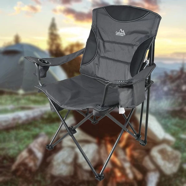 A széket minden kültéri szerelmes értékelni fogja a kínált kényelemnek köszönhetően. A szék jól varrott huzattal és párnázott fogantyúval van felszerelve. A fogantyúkat italtartó és praktikus táska egészíti ki az apróságok tárolására.