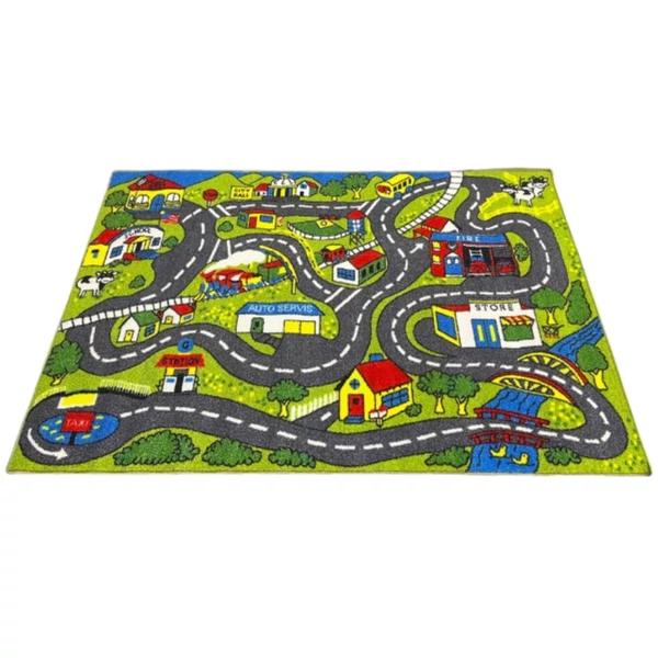 A Miniváros gyerekszőnyeg igazi kalandterep a kis felfedezők számára! Színes városi mintázatával – utak, hidak, boltok, autószerviz és benzinkút – ösztönzi a gyerekeket a kreatív, szerepjátékos szórakozásra. Ideális választás a gyerekszobába, ahol a játék, a tanulás és a fantázia egyaránt szerepet kap.