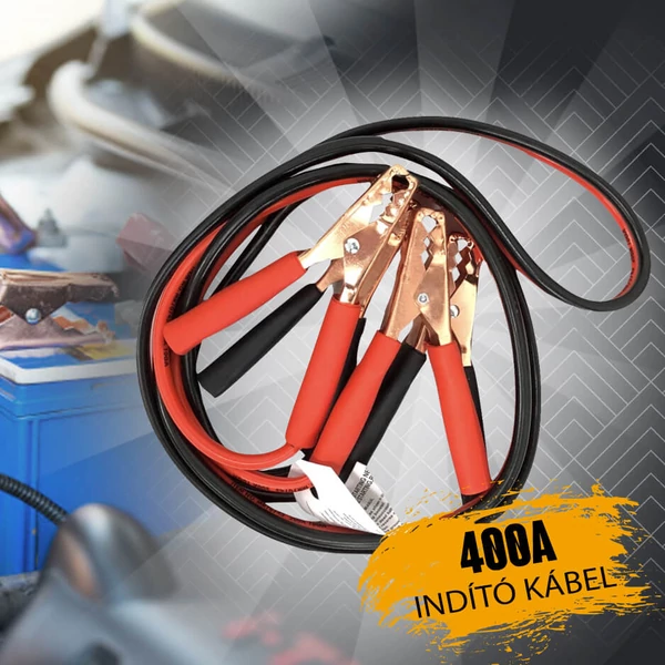 A 2,5 méter hosszú indítókábel max. 400 A áramerősség 12 V feszültség mellett használható.