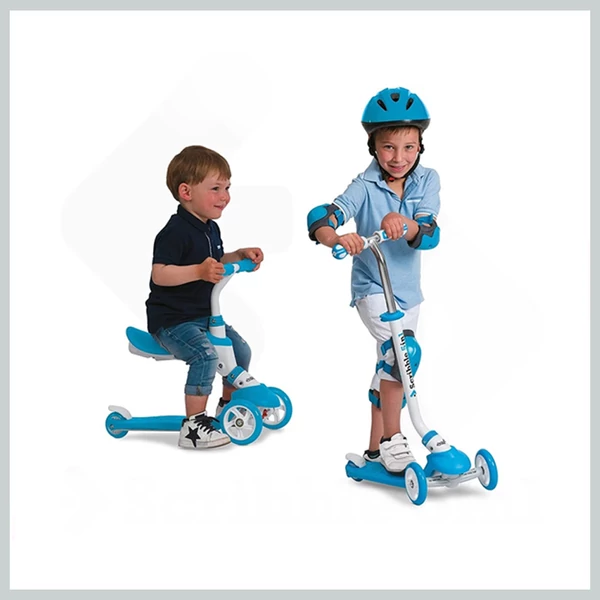 Ezt az 5 az 1-ben robogót könnyű felszerelni: egy összecsukható rudat tartalmaz, amelyet nagyon kényelmes tolni. A kivehető ülés idővel levehető a keretről, ahogy gyermeke nő. Használható robogónak is.