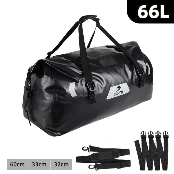 A TDGO 65 literes vízálló motoros túratáska kiválóan alkalmas hosszú utakra és extrém körülményekre. Strapabíró PVC bevonatú anyaga teljes védelmet nyújt eső, sár, szél és por ellen, miközben óriási pakolókapacitása elegendő motoros ruházat, sisak, csizma és egyéb felszerelések számára.