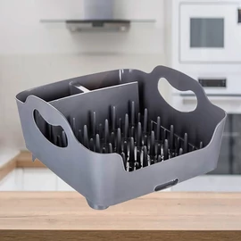 Az edénycsepegtetőn könnyedén elhelyezhető tányérok, poharak, és külön rekesze van az evőeszközöknek.
