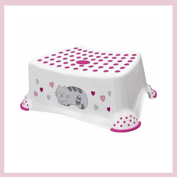 Használható ülőfelületként vagy lépcsőfokként gyermekek számára. Alkalmas fürdőszobában vagy WC-ben való használatra, amikor megkönnyíti a gyermekek hozzáférését a nehezen elérhető helyekhez. A szék alján és tetején is csúszásmentes bevonat található