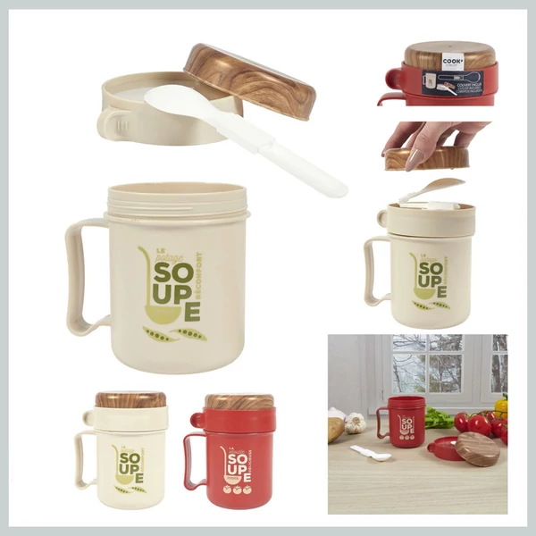Műanyag leveses bögre tetővel és kanállal KA0363