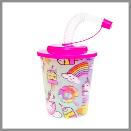 Műanyag pohár, szívószállal és fedéllel, unikornis 8171
