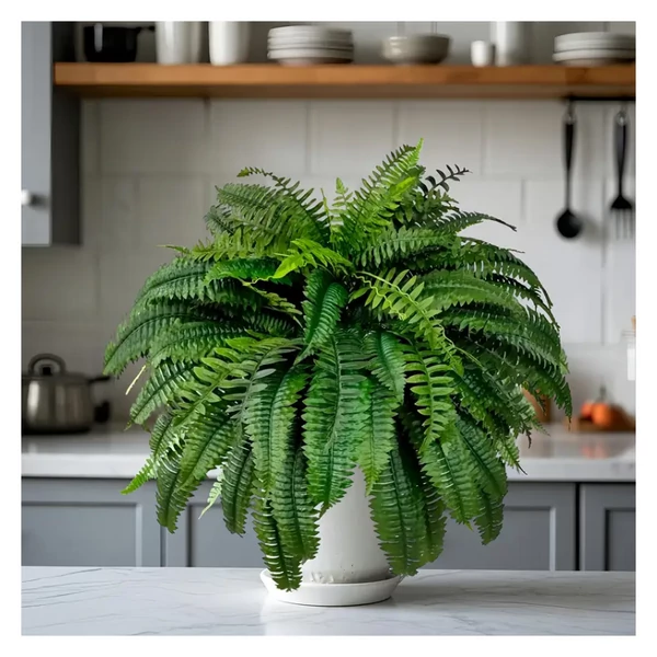Valósághű páfrány levelek – Gondosan kidolgozott műnövények, amelyek élethűen tükrözik a valódi páfrányokat.