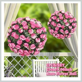 Varázsolj romantikus, virágos hangulatot kertedbe, teraszodra vagy rendezvényed helyszínére ezzel a 2 darabos rózsagömb dekorációval! A gömbök valósághű, rózsaszín selyemrózsákból és zöld levelekből készültek, átmérőjük 23 cm