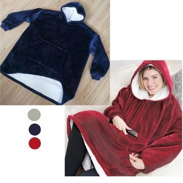 Nagyméretű kapucnis pulóver és takaró egyben, amely ötvözi a kényelmes takaró melegét kedvenc kapucnis pulcsid kényelmével. Ultrapuha, Sherpa hatású anyagból készült.