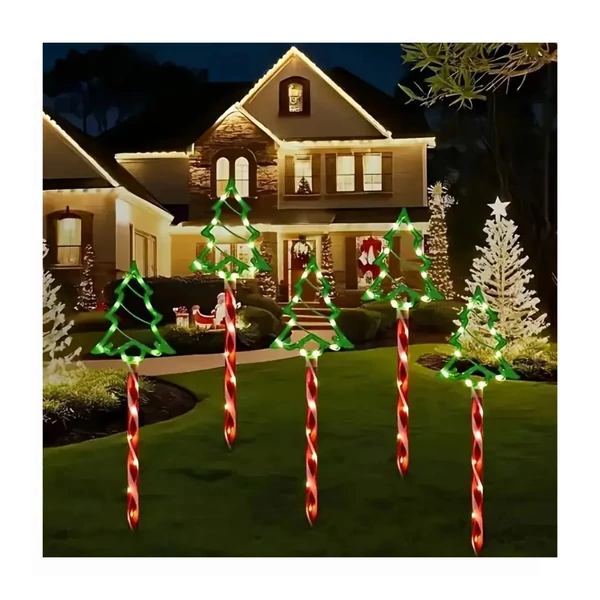 Látványos és energiatakarékos napelemes kerti dekoráció, amely 5 darab fenyőfa alakú világító díszt tartalmaz. A zöld és piros fények meghitt karácsonyi hangulatot varázsolnak a kertbe vagy a bejárathoz.