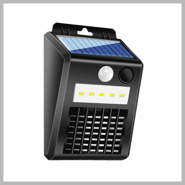 Ez a napelemes szúnyogirtó lámpa hatékony védelmet nyújt a repülő rovarok ellen, miközben energiatakarékos kültéri világításként is funkcionál. A készülék nappal automatikusan töltődik, éjszaka pedig automatikusan bekapcsol. Beépített fehér és UV-fényű LED-ek csalogatják a rovarokat, amelyeket a beépített elektromos rács semlegesít.