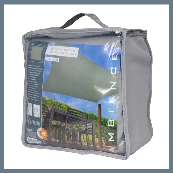 Ez a 5x5 méteres négyzet alakú napellenző kiváló megoldás a kültéri terek árnyékolására. Tartós, vízlepergető bevonattal ellátott poliészter anyagból készült, amely hatékony védelmet nyújt a nap és az UV-sugárzás ellen. Ideális választás kertekbe, teraszokra, udvarokra vagy akár medencék mellé is.