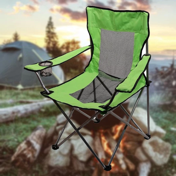 A szék könnyen és gyorsan összecsukható, és négy támasztólábbal van felszerelve, amelyek sátorfákkal rögzíthetők a talajhoz, és így jelentősen növelik a stabilitást. A szék kényelmes és stabil ülést biztosít.