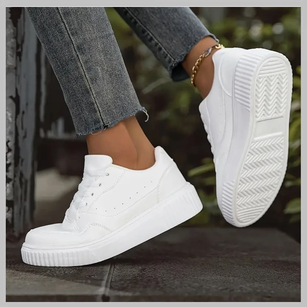 Ez a modern, egyszínű fehér tornacipő tökéletes választás a mindennapi viselethez. Letisztult, divatos megjelenésének köszönhetően könnyedén kombinálható farmerrel, leggingsszel vagy sportos szettekkel. A fűzős kialakítás biztos tartást nyújt, míg az alacsony szárú fazon szabad mozgást tesz lehetővé.
