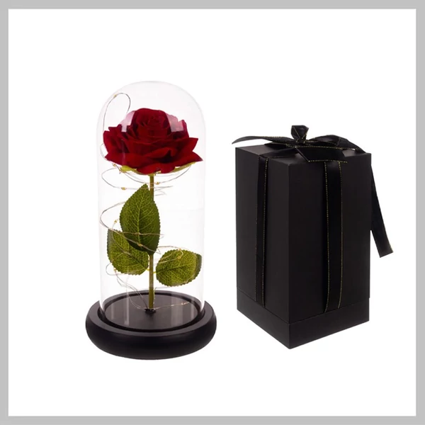 Örökrózsa díszüvegben, ajándék dobozzal, LED világítással 00021619