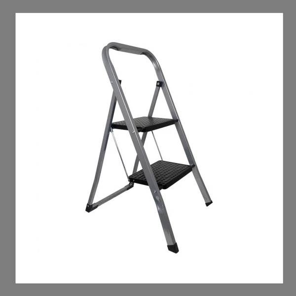 kiváló minőségű 2 lépcsős létra, fémből, a helytakarékosság érdekében összecsukható
