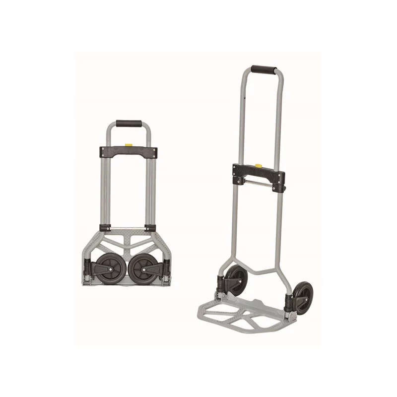 Ez a praktikus összecsukható kézikocsi ideális választás mindennapi szállítási feladatokhoz. Könnyű alumínium váza ellenére rendkívül erős és tartós, így akár nagyobb terhek mozgatására is alkalmas. Összecsukható kialakítása révén kis helyen is elfér, könnyen hordozható és gyorsan használatra kész.
