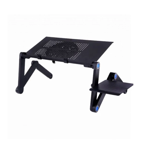 Praktikus, mobilis és állítható laptopasztal beépített hűtőventilátorral, amely segít a laptop optimális hőelvezetésében. Használható ágyban, kanapén vagy utazás közben, könnyű alumínium váza és összecsukható kialakítása révén könnyen hordozható és helytakarékos.