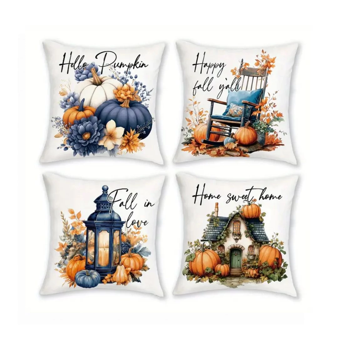 Ez a 4 darabos, prémium minőségű díszpárnahuzat szett gyönyörű őszi mintákkal díszített, amelyek otthonodba meleg és barátságos hangulatot varázsolnak. A szezonális motívumok – tökök, virágok, lámpás, hintaszék és mesebeli házikó – tökéletes kiegészítők a nappaliba, hálószobába vagy teraszra.