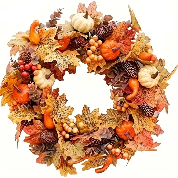 Hozz őszi hangulatot otthonodba ezzel a részletgazdag, bohém stílusú koszorúval, amely ideális választás bejárati ajtóra, nappaliba vagy akár kültéri dekorációhoz. A koszorút élethű mű tökök, színes juharlevelek, bogyók és fenyőtobozok díszítik, így tökéletes kiegészítője az őszi szezon és a hálaadás ünnepi dekorációjának.