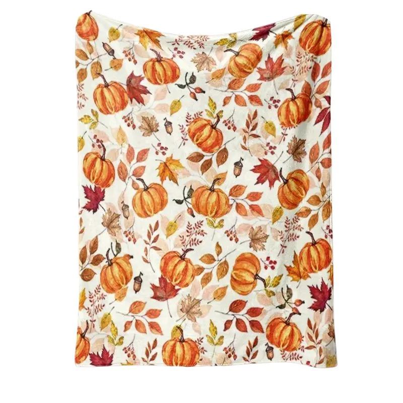 Őszi Tök és Levélmintás Flanel Takaró – 150×130 cm BW5475772-4